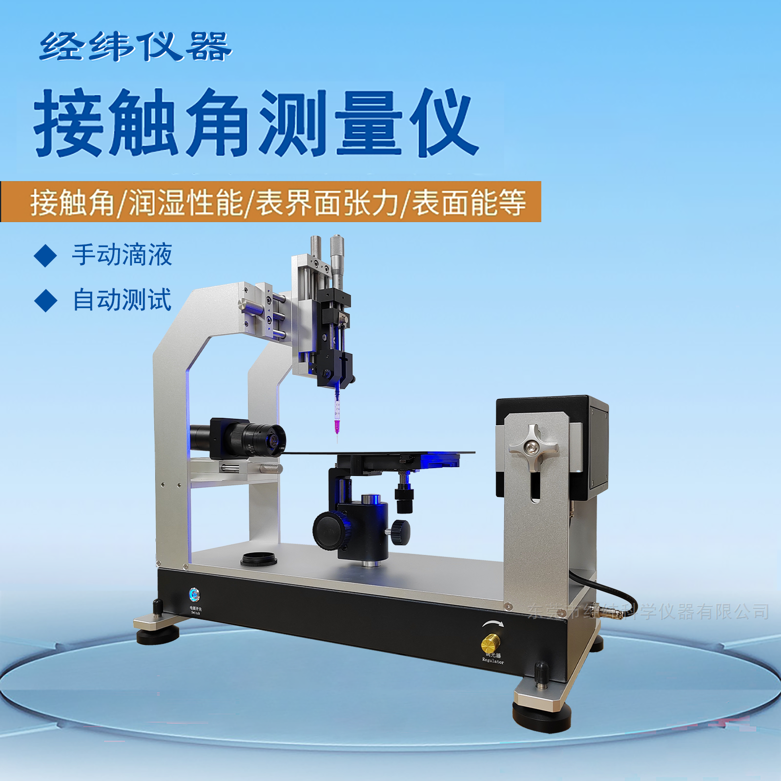 标准型光学接触角测量仪JWC10遵循轻量化与标准化的结构设计原则,稳健紧凑、手动滴液款经济实惠,用于测试和分析液体在固体表面的接触角、固体的表面能等。广泛用于企业工艺和质量检测,同时也适用于高校教学。