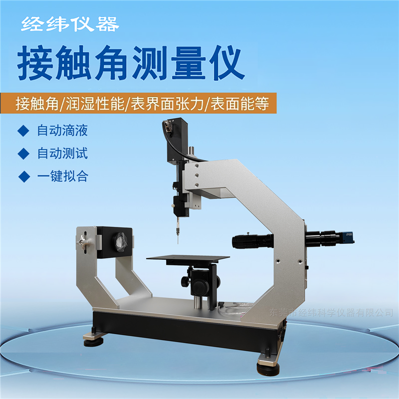 接触角测量仪主要是由控制系统、注射系统、三轴移动样平台、视频采集系统、分析软件五大部分组成,设备采用光学投影原理。