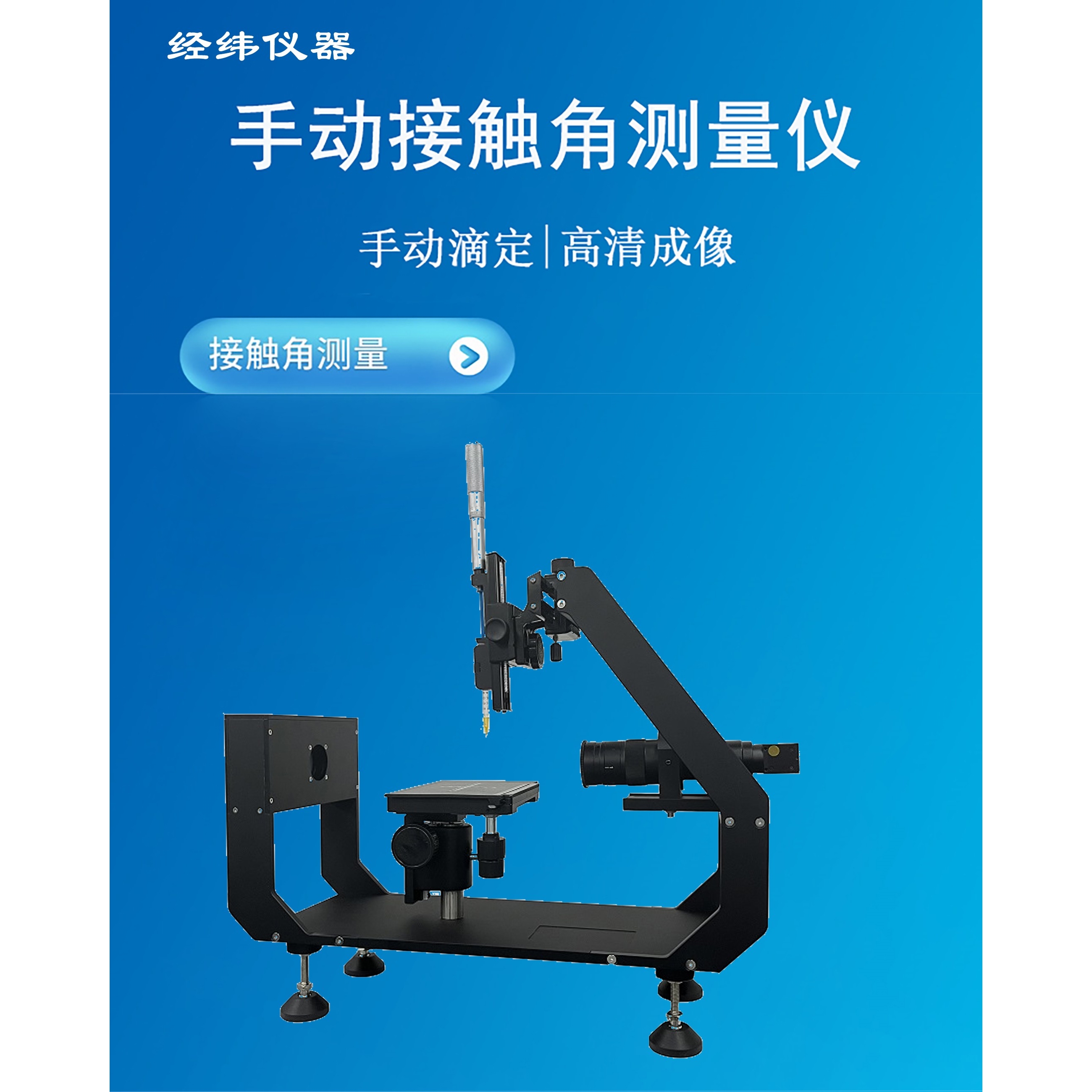 标准光学接触角测量仪 电池隔膜润湿性分析JWZ01采用简洁化与标准化的结构设计原则,手动滴液接触角测量仪操作简单、成本低廉等优点,用于测试和分析液体在固体表面的接触角、固体的表面能等,在实验室和工业生产中得到了广泛应用。